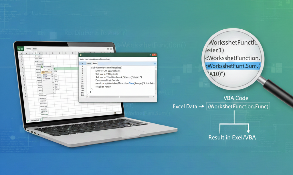 VBAでExcelのワークシート関数を利用したい場合は『WorksheetFunction.』を使います。