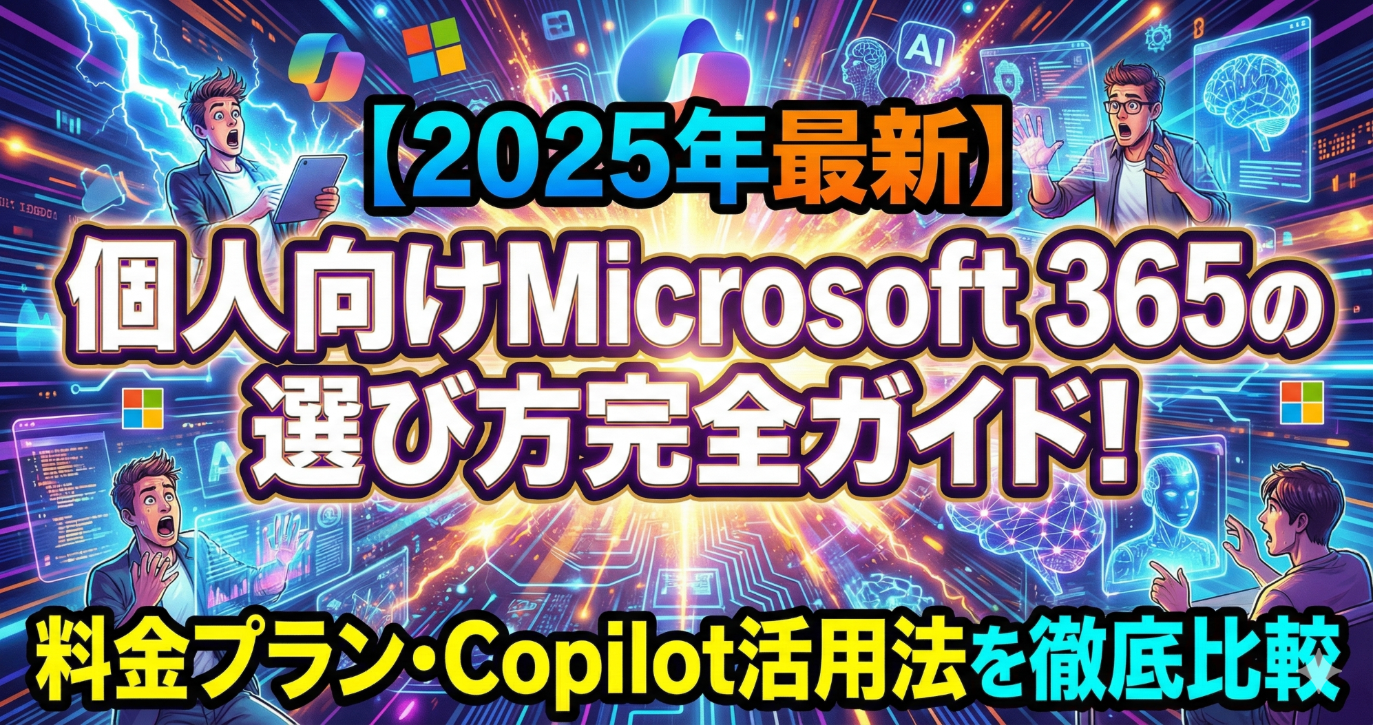 まずは、個人が契約できる主要プランの全体像を把握しましょう。2025年現在、個人向けプランにはOfficeアプリ内のAI機能(Copilot)が標準搭載されています。