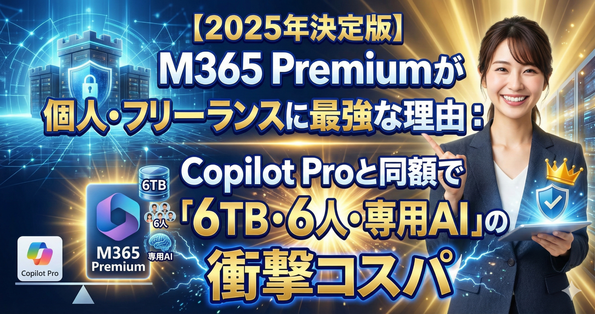 結論から申し上げます。ブログ執筆、データ分析、家族での共有、そのすべてを叶える「Microsoft 365 Premium(以下M365 Premium)」は、現在最もコストパフォーマンスに優れた「最強のプラン」です。